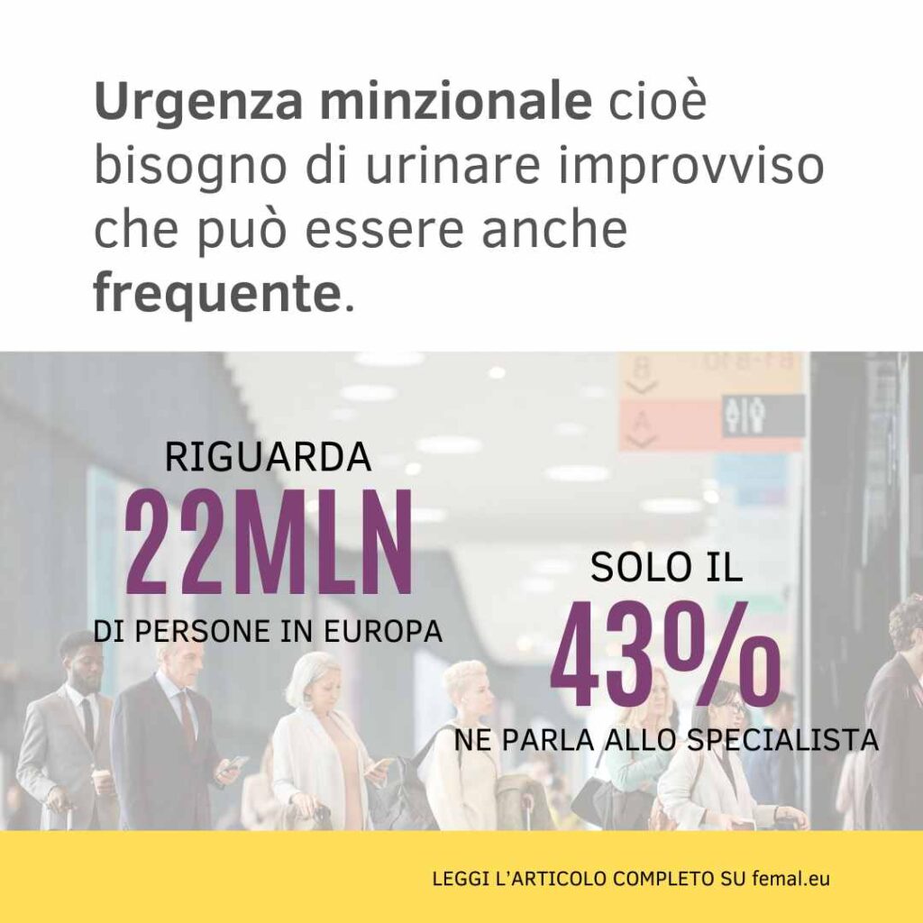 L’aumento della frequenza-urgenza minzionale, conosciuta anche come overactive bladder, è caratterizzato proprio da questo bisogno urgente e improvviso di urinare, che talvolta si associa a episodi di incontinenza. È una questione tutt’altro che rara: interessa circa 22milioni di persone in Europa, con una maggiore incidenza nelle donne, ma solo il 43% si rivolge allo specialista.